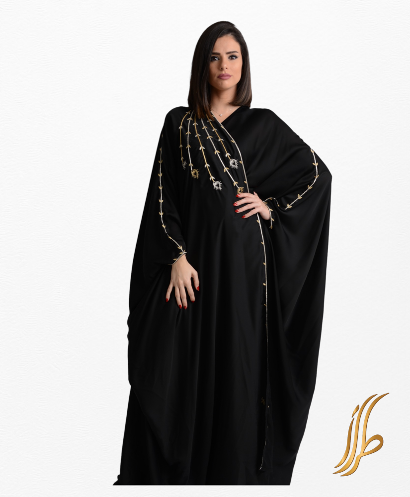تألقي بإطلالة ملكية تعكس الفخامة العربية الأصيلة مع لمسات من البريق الذي لا ينسى في أهم مناسباتك حيث صممت عباية ريشة طراز جنب واحد بخامة الحرير الطبيعي الانسيابية لتمنحكِ مظهراً يفيض بالوقار والجمال بفضل تطريز القصب الذهبي والفضي الذي يزين جانباً واحداً بكل رقي لذا بادري بطلبها الآن من متجر طراز واجعلي حضوركِ عنواناً للفخامة.